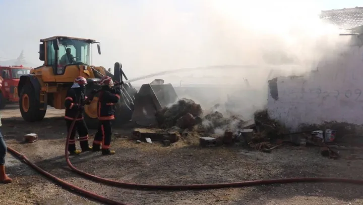 Yangın, Çardak Mahallesi mevkiinde bulunan bir besi çiftliğinde çıktı. Edinilen bilgiye göre, işletmeciliğini M.U. ve S.A.'nın yaptığı besi çiftliğinde, temizlik yapıldığı esnada yakılan ateş saman balyalarının bulunduğu bölüme sıçradı. Yangının haber verilmesi üzerine bölgeye itfaiye ekipleri sevk edildi. Bölgeye ulaşan itfaiye ekipleri, iş makinalarının da yardımıyla müdahale ettikleri yangını kontrol altına alarak söndürdü. Alevler, hayvanların olduğu bölüme sıçramadan kontrol altına alınırken, besi çiftliğinde kalan bir kadın ise dumandan etkilendi. Yangında bin adet saman balyası yanarak küle döndü.