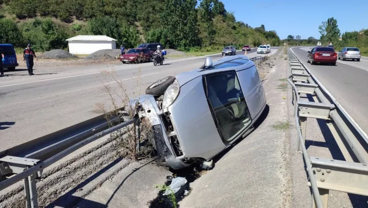 Sakarya'nın Karasu ilçesinde sürücüsünün direksiyon hakimiyetini kaybettiği otomobil refüjde yan yattı. Kazada otomobil sürücüsü yaralandı.
