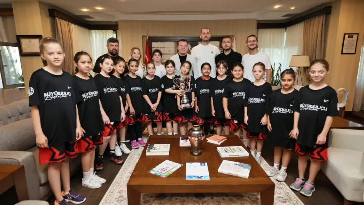 İstanbul şampiyonu Büyükkılıçlıspor U-10 Kız Basketbol Takımı, kazandıkları kupayla Başkan Balcıoğlu'nun konuğu oldu.