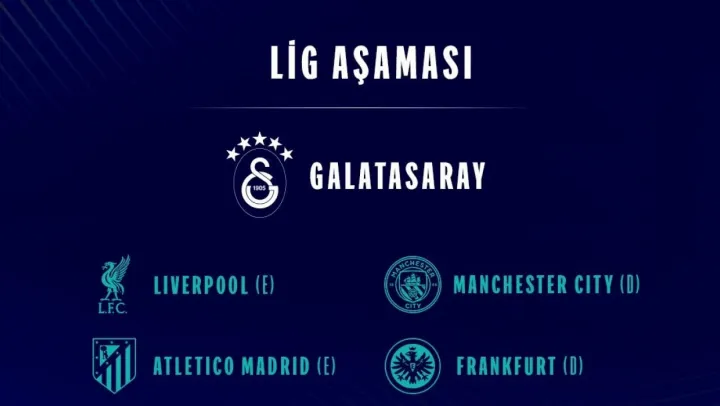 Türkiye'yi UEFA Şampiyonlar Ligi'nde temsil eden Galatasaray'ın rakipleri Liverpool, Manchester City, Eintracht Frankfurt, Atletico Madrid, Bodo/Glimt, Ajax, Monaco ve Union SG oldu.