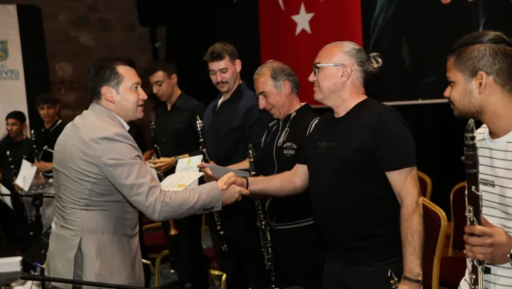 Silivri Belediye Başkanı Bora Balcıoğlu, sanatseverlerle birlikte Dönem Sonu Etkinlikleri'nin ilk gününde sahnedeki performanslara eşlik etti. Kültür Merkezi'nde gerçekleştirilen etkinlikte kursiyerler, kanun ve klarnet dinletileriyle geceye melodik bir giriş yaptı. Ardından Türk Sanat Müziği ve Türk Halk Müziği konserleri, izleyicilere unutulmaz anlar yaşattı.