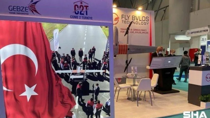 İngiltere hava sahasında Türk bayrağı ile uçan ilk sivil İHA olan 'Sancak' SAHA EXPO'da yerini aldı.