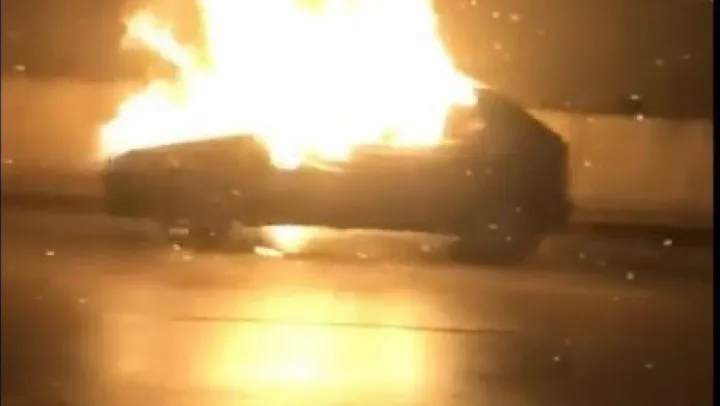 Sancaktepe'de otoyolda arızalanan bir otomobil alev alev yandı. Yangın itfaiye ekipleri tarafından söndürülürken, araç hurdaya döndü.
