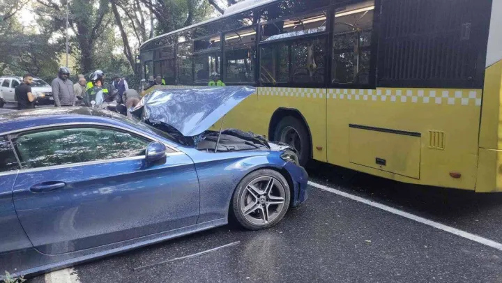 Sarıyer'de içinde yolcuların bulunduğu İETT otobüsü ile lüks bir otomobil, yağışın etkisiyle kaygan olan yolda kafa kafaya çarpıştı. Faciadan kıl payı dönülen kazada ölen ya da yaralanan olmazken, yolda uzun araç kuyruğu oluştu.