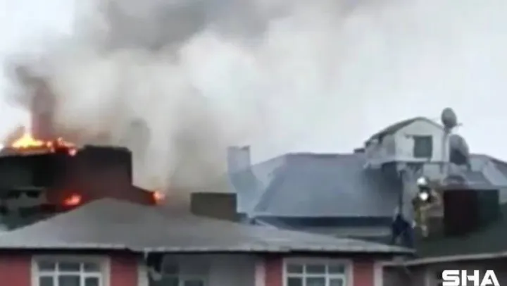 Sarıyer'de bir binanın asansöründe elektrik kontağında çıkan yangın çatıya sıçradı. Binanın çatısının alev alev yandığı anlar cep telefonu kamerasına yansıdı.