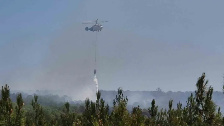 Şarköy'de orman yangınına helikopterle müdahale sürüyor