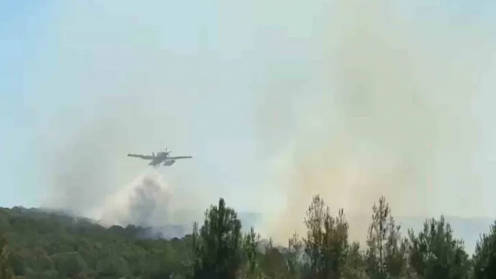Tekirdağ'ın Şarköy ilçesinde ormanlık alanda çıkan yangına karadan ve havadan müdahale ediliyor.