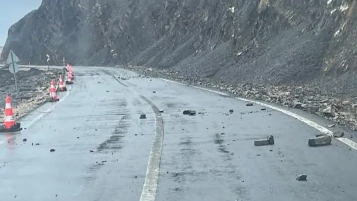 Yetkililer, muhtemel kaya düşmelerine karşı sürücülerin dikkatli seyretmeleri konusunda uyarıda bulundu.