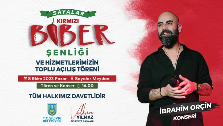 Silivri Belediyesi tarafından bu yıl ilk kez düzenlenecek olan Sayalar Kırmızı Biber Şenliği, 8 Ekim 2023 Pazar günü gerçekleştirilecek. Sayalar'a yeni kazandırılan meydan düzenlemesi, sağlık evi, mahalle evi ve halı sahanı toplu açılış törenin de gerçekleştirileceği etkinliğin sahne programlarında Sanatçı İbrahim Orçin, en güzel şarkılarını Silivrililer için seslendirecek.
