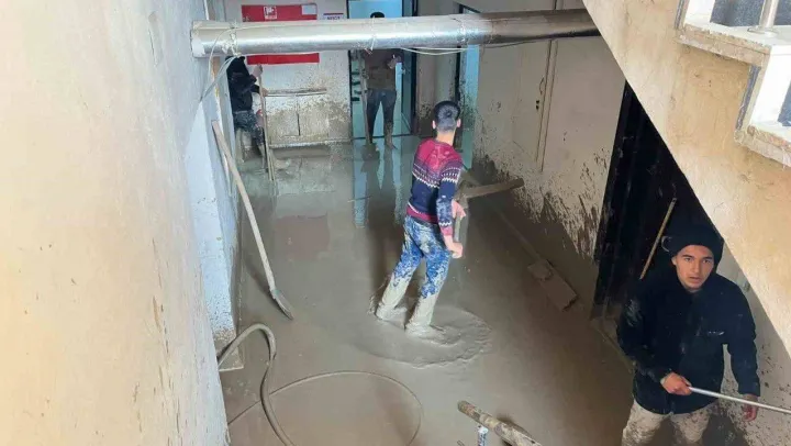 İzmit Belediyesi, sel felaketinin yaşandığı Adıyaman'da polis lojmanlarının temizlik çalışmalarına destek veriyor.