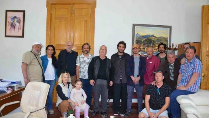 Uluslararası Kuzey Ege Gömeç Heykel Sempozyumuna katılan 12 sanatçı, Gömeç Belediye Başkanı Mehmet İrem Himam'ı makamında ziyaret etti.