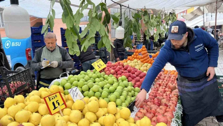 Pazarda işlerin güzel olduğunu belirten pazarcı Mücahit Dilmaç, 'Şu anda kış meyvelerinde bolluk zamanı. Tezgahlarımızda çeşit çok. Bunların içerisinde portakal, muz, elma, ayva, çilek gibi meyveler var. En çok elma muz ve portakala talep var. Şu anda yenilecek meyveler bunlar. Muz 17-18 TL, elma 12-15 TL, portakal 15 TL, ayva 15 TL'den satılıyor. Bu fiyatlar daha düşmez, bolluk biterse fiyatlar tekrar artmaya başlar' şeklinde konuştu.