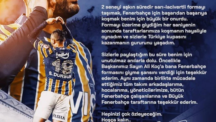 Fenerbahçe'den Fatih Karagümrük'e transfer olan milli oyuncu Serdar Dursun, sarı-lacivertli kulübe yayımladığı mesaj ile veda etti.
