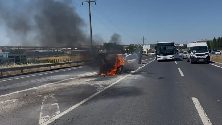Edinilen bilgilere göre, Çerkezköy-Çorlu yolu üzerinde seyir halinde olan 59 AHZ 355 plakalı bir araç, henüz öğrenilemeyen bir sebeple alev aldı. Araçtan duman yükseldiğini fark eden sürücü, otomobili yol kenarına çekerek hemen araçtakilerle birlikte tahliye oldu. Alevler kısa sürede aracı sararken, olay yerine yakın bir su tankeri ile çevredeki vatandaşlar yangına müdahale etti. Jandarma ekipleri yol üzerinde geniş güvenlik önlemleri alırken, çevredeki vatandaşların da desteğiyle yangın söndürüldü. Olay yerine gelen itfaiye ekipleri soğutma çalışmalarını tamamlamasının ardından, yangın sona erdi. Araçta ciddi maddi hasar oluşurken, olayda yaralanan olmadığı bildirildi. Yangının çıkış nedeni yapılacak teknik inceleme sonrası netlik kazanacağı ifade edilirken, başlatılan inceleme sürüyor.