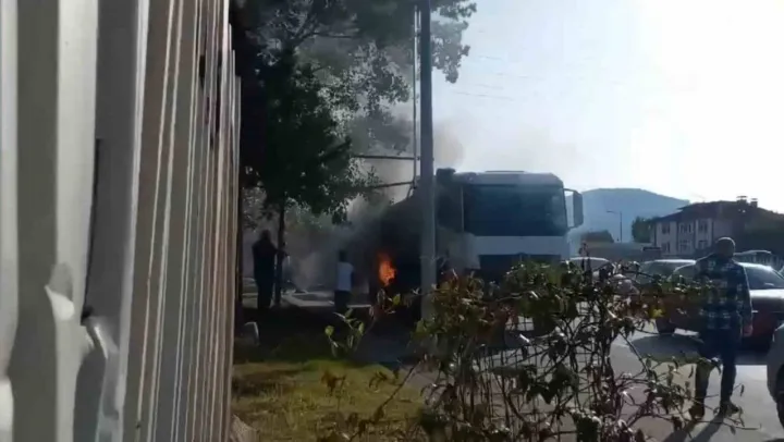 Kocaeli'nin Gölcük ilçesinde seyir halindeki ağır tonajlı kamyon tekerinden alevler yükselmeye başladı. Yangını gören sürücü hemen araçtan inerken, yoldan tesadüfen geçen Gölcük Belediyesi Temizlik İşleri Müdürlüğüne bağlı ekipler, su tankeri ile alevlere müdahale etti.