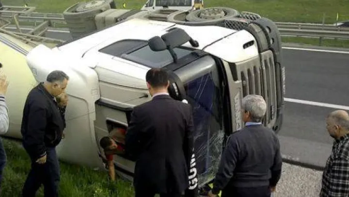 Kaza, sabah saatlerinde Silivri TEM otoyolu Selimpaşa mevkiinde meydana geldi. 34 AB 1264 plakalı TIR, seyir halinde iken sürücüsü Hasan Kıvrık'ın hakimiyeti kaybetmesi sonucu yol kenarına devrildi. TIR sürücüsü Kıvrık, aracın 'kupa' tabir edilen bölümünde mahsur kaldı. Dengesini sağlaman ikin ayağa kalkan Kıvrık, bir süre dışarı çıkmak için uğraştı. Sürücü, aracın camını kırarak dışarı çıktı. Yaralanmadığı gözlenen Hasan Kıvrık, çevredekilerin tavsiyesiyle olay yerine sağlık ekibi çağırılması için ikna edildi.Kaza nedeniyle yol bir süre trafiği tıkandı.