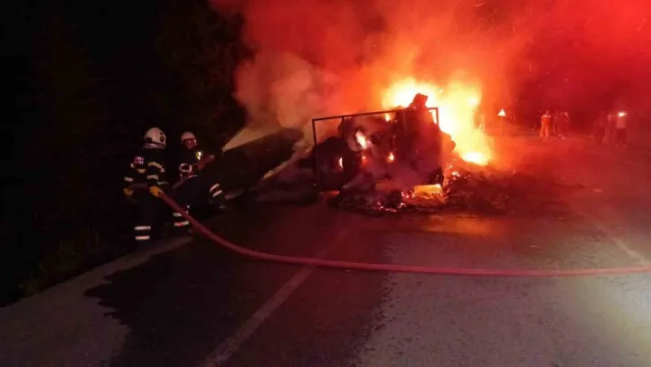 Söndürme çalışması sırasında yolda trafik tek şeritten kontrollü sağlandı.
