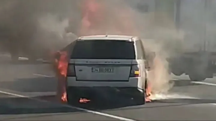 Seyir halindeyken alev alan lüks cip küle döndü: O anlar kamerada