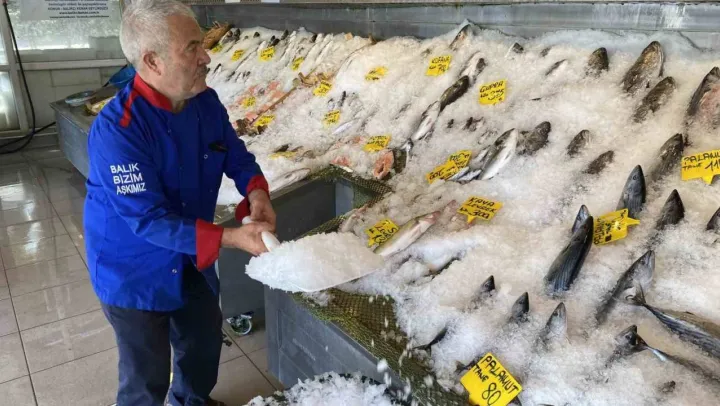 Hava sıcaklıklarının yüksek derecelerde seyretmesiyle tezgahlarda bulunan balıkları korumak isteyen balıkçılar, buzlama yöntemine başvurdu.