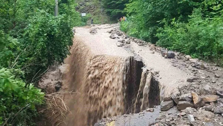 Şiddetli yağmur yolu çökertti, sular adeta şelale gibi aktı