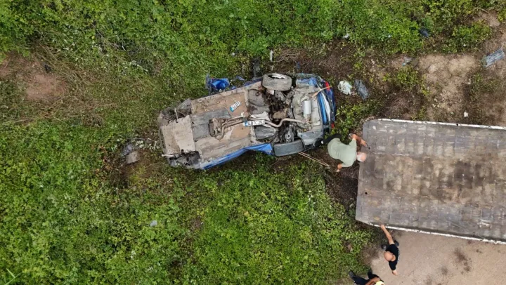 Şile Otoyolu'nda sabah saatlerinde meydana gelen kazada, aşırı hız nedeniyle kontrolden çıkan otomobilin ormanlık alana uçması sonucunda Yelda Karaduman (40) hayatını kaybetmişti. Kaza sonrası jandarma ekiplerinin olay yerindeki incelemeleri tamamlamasının ardından, hurdaya dönen araç, çekiciye yüklenerek otoparka götürüldü. O anlar havadan görüntülendi.