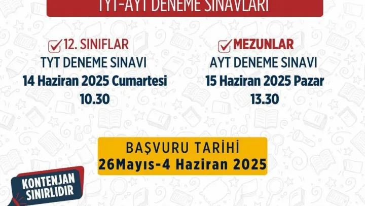 12. Sınıf TYT Deneme Sınavı: 14 Haziran 2025 Cumartesi günü saat 10.30'da