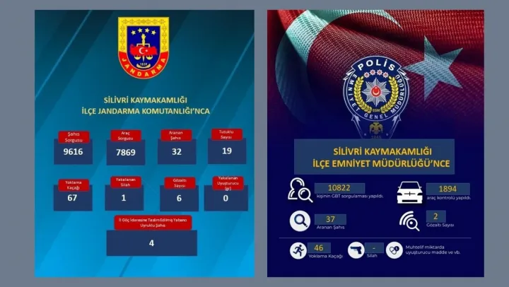 10-15 Haziran 2025 tarihleri arasında Silivri Kaymakamlığı'na bağlı İlçe Emniyet Müdürlüğü ve İlçe Jandarma Komutanlığı tarafından yürütülen denetimlerde toplamda 20 binden fazla şahıs ve araç sorgulandı. Aranan şahıslar yakalandı, kaçaklar tespit edildi, uyuşturucu ve silah ele geçirildi.