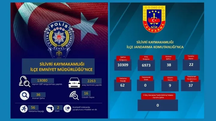 Silivri İlçe Emniyet Müdürlüğü ve İlçe Jandarma Komutanlığı, 14-20 Nisan 2025 tarihleri arasında gerçekleştirdikleri denetimlerle ilçede huzur ve güvenliği sağlamak adına önemli çalışmalara imza attı.