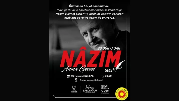Silivri Belediyesi, usta şair Nâzım Hikmet'in ölümünün 62'nci yılında özel bir anma programı gerçekleştiriyor. Şiir ve müzik dolu gece, vatandaşlara unutulmaz anlar yaşatacak.