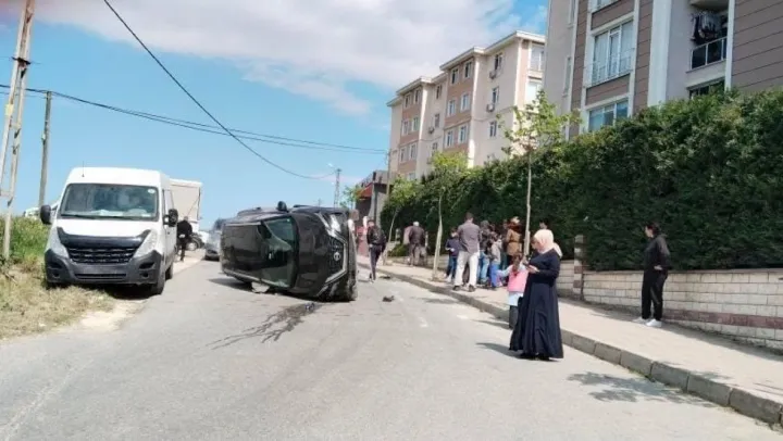Silivri'de sürücüsünün kontrolünü kaybettiği araç takla atıp yan yattı: 2 yaralı