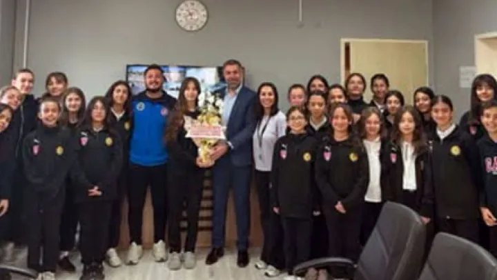Takımlar, değerli antrenörleri Muharrem Hasdemir ve Emine Sevgili Eker ile birlikte Okul Müdürü Ahmet Öngel'i ziyaret ederek, kendilerine verdikleri destekten dolayı çiçek takdim etti.