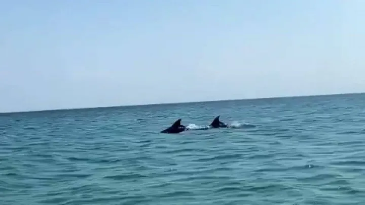 Silivri Gümüşyaka sahilinde yunus balıkları görsel şölen oluşturdu. O anları bir vatandaş cep telefonuna kaydetti.