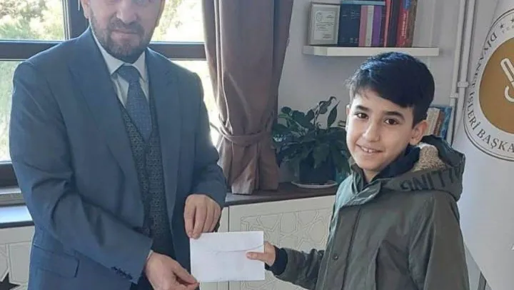 Simav İlçe Müftülüğüne bağlı 15 Temmuz Şehitleri Hafızlık Yatılı Kur'an Kursu öğrencilerinden 12 yaşındaki Ensar Saka, biriktirmiş olduğu harçlıklarını depremzedelere bağışladı.