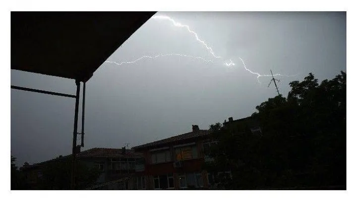 Meteorolojiden yapılan uyarıların ardından beklenen sağanak yağış öncesi etkili şimşekler gökyüzünü aydınlattı.