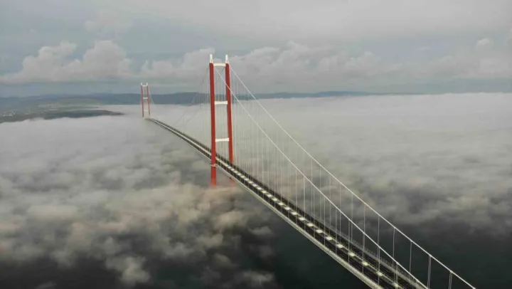 2023 metre orta açıklığıyla dünyanın en uzun orta açıklığa sahip asma köprüsü olan 1915 Çanakkale Köprüsü'nün sis bulutu altındaki hali ise drone ile görüntülendi. Sis bulutu geçişi sırasında 1915 Çanakkale Köprüsünün görüntüsüyle adeta büyüledi.