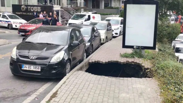 Şişli'de kaldırımda bilinmeyen bir nedenle çökme meydana geldi. Çökme sonucu oluşan çukura düşen kadın hastaneye kaldırıldı.