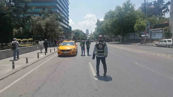 Şişli'de sivil trafik polisleri tarafından ticari taksilere yönelik denetim yapıldı. Yapılan denetimde belediye ruhsatı bulunmadığı tespit edilen bir araç trafikten men edilirken, emniyet kemeri takmayan sürücülere ceza yazıldı.