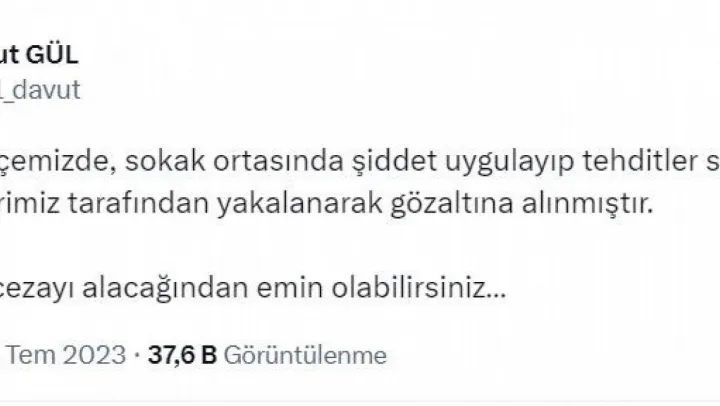 Piri Reis Mahallesi'nde iddiaya göre kadınla tartışan maganda, kadını döverek bayıltmıştı. Kanlar içinde sokak ortasında yatan kadını gören vatandaşlar olaya müdahale etmek istemişti. Vatandaşların seslenmesine kızan şüpheli şahıs küfür etmeye başlamıştı. Şahıs, baygın kadını sürükleyerek arabaya bindirmişti. Polis olayla ilgili çalışma başlatmıştı. Konuya ilişkin sosyal medya adresinden açıklama yapan İstanbul Valisi Davut Gül, şahsın yakalandığını duyurdu. Gül açıklamasında, 'Esenyurt ilçemizde, sokak ortasında şiddet uygulayıp tehditler savuran kişi polislerimiz tarafından yakalanarak gözaltına alınmıştır. Hak ettiği cezayı alacağından emin olabilirsiniz.' ifadelerini kullandı.