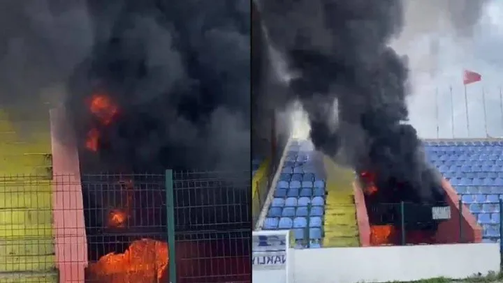 Tekirdağ Çorlu General Basri Saran Stadyumu'nda çıkan yangın paniğe neden oldu.