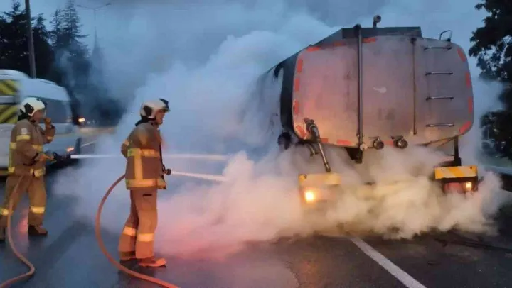 Balıkesir'de bir tanker seyir halinde iken alev aldı. 45 AIT 954 plakalı su tankeri, Balıkesir-İzmir çevreyolu Çayırhisar Mahallesi mevkinde seyir halindeyken lastik kısmından tutuşmaya başladı. Aracının yandığını fark eden sürücü itfaiyeyi arayarak durumu bildirdi. Olay yerine gelen ekipler yangını kısa sürede söndürürken, araçta maddi hasar oluştu.