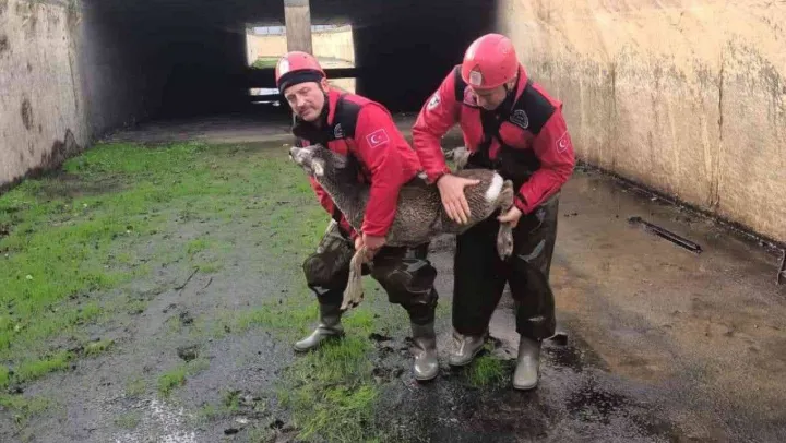 Sulama kanalına düşen karaca yavrusu kurtarıldı