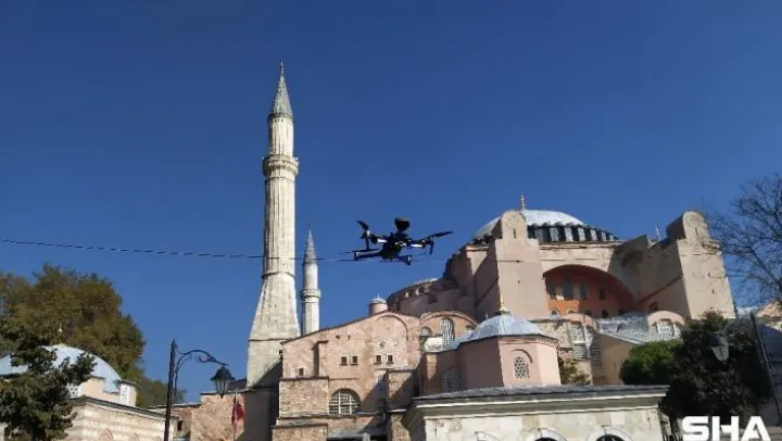 Sultanahmet ve Ayasofya'da drone'lu virüs denetimi