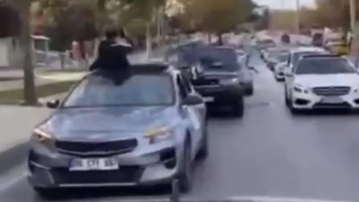 Sultanbeyli'de, cadde üzerinde ilerleyen düğün konvoyunda bir maganda havaya ateş açtı. Otomobil içerisinden tabanca ile havaya ateş açan maganda cep telefonu kamerasına yansıdı.