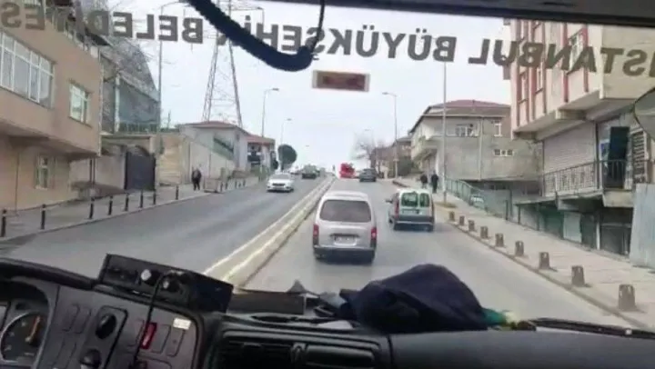 İstanbul Sultanbeyli'de bir ihbar üzerine adrese gitmekte olan itfaiye aracına, yoldaki bir ticari aracın sürücüsü yol vermedi. Sürücünün yolun sağına geçmeyerek ısrarla itfaiyeye yol vermediği anlar cep telefonu kamerasına yansıdı.