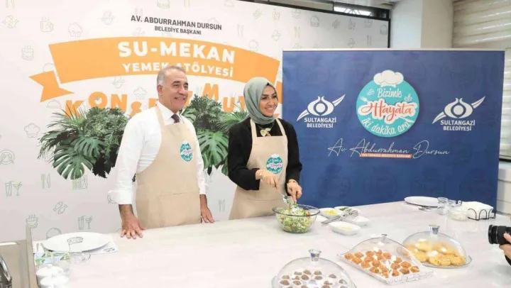 Mutfak önlüğünü takıp kollarını sıvadıktan sonra yemek atölyesi tezgahının başına geçen Sultangazi Belediye Başkanı Av. Abdurrahman Dursun, eşi Tuba Dursun ile birlikte misafirleri için salata hazırladı.