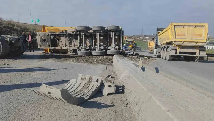 Olay saat 12.00 sıralarında Cebeci Mahallesi Kuzey Marmara otoyolu bağlantısı taşocağı mevkiinde meydana geldi. Edinilen bilgiye göre yabancı uyruklu sürücünün kullandığı hafriyat yüklü tır, viraja hızlı girince kontrolden çıktı. Yaklaşık 20 metre kadar sürüklenen tır karşı şeride geçtikten sonra savruldu ve hafriyat yüklü damper yerinden koparak devrildi. Devrilen damperdeki tonlarca toprak ise yola döküldü. Olayından ardından sürücü olay yerinden kaçarken, tırda büyük çapta hasar meydana geldi. Zarar gören yakıt deposundaki akaryakıtın yola döküldüğü görüldü.