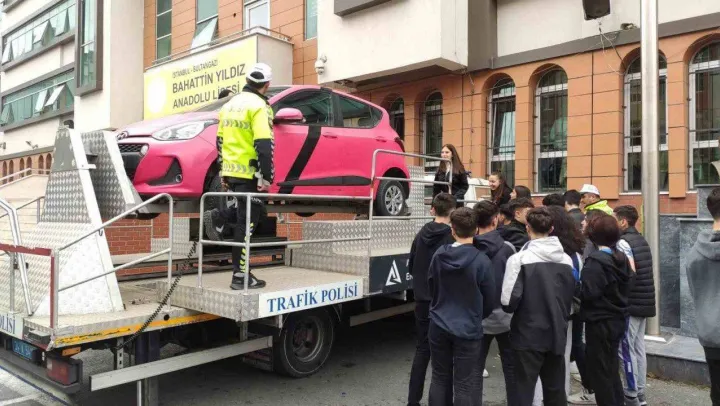 Sultangazi'de öğrencilere simülasyon eşliğinde emniyet kemerinin önemi anlatıldı