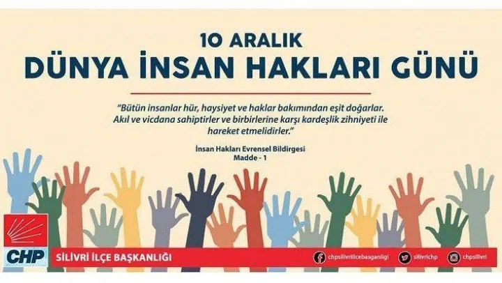 Cumhuriyet Halk Partisi Silivri İlçe Başkanı Suna Göçengil, 10 Aralık Dünya İnsan Hakları günü sebebiyle bir mesaj yayınladı.