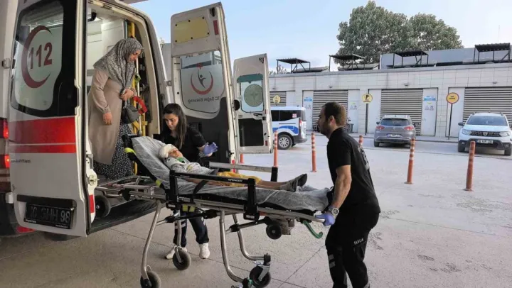 Bursa'nın İnegöl ilçesinde meydana gelen olayda apartmanın devrilen demir sürgülü kapısının altında kalan çocuk ağır yaralandı.