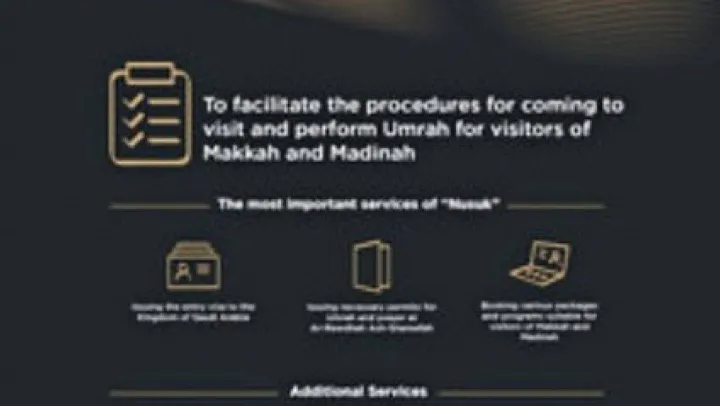 Hac ve Umre Bakanlığı, hacılar ve ziyaretçilerin Mekke ve Medine'ye yaptıkları yolculuklar için kullanımı kolay planlama yöntemi olan resmi Suudi entegre dijital platformu Nusuk'un (nusuk.sa) tanıtımını yaptı. Yapılan açıklamaya göre platform, Suudi Arabistan Krallığı'nı dünyanın dört bir yanından ziyaret eden Müslümanların deneyimlerini geliştirmeyi ve ziyaretçilerin umre yapmalarına yönelik varış prosedürlerini kolaylaştırmayı hedefliyor.